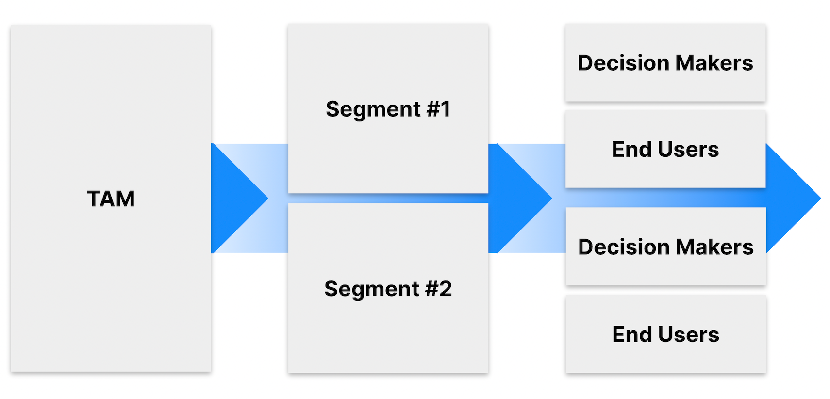 Next, get even more targeted. Split the segments into decision makers versus end users.